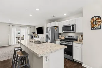 Truly move-in ready, making this better than new construction! Comfortable living that's designed for real life in this nearly new 1,579 sqft townhome with 2 beds+loft and 2.5 bathrooms. Entertain effortlessly in the open-concept main level where the kitchen sits center-stage between an oversized living room and a separate dining room overlooking the front lawn. The kitchen invites you in with all-white cabinetry, a French door refrigerator, stainless appliances, a pantry, and an extra-long island perfect for gathering. A powder room and spacious balcony perfect for grilling round out this floor. Upstairs, the king-size primary suite features a walk-in closet and ensuite bathroom with a walk-in shower. The second bedroom and flexible loft share a second full bath with a bathtub, and convenient top-floor laundry has a GE Profile side-by-side washer/dryer. The lower-level family room offers even more space to spread out or use as a flex room. Top it all off with built-in Smart Home Technology controlled from your phone and home touchscreen, new ceiling fans in the bedrooms, new window treatments throughout, a 2-car attached garage with extra storage, pet-friendly grounds, and professional landscaping. No need to keep searching, you've found the one!